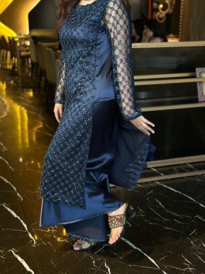 Fabric & Drape: Made from premium high-sheen silk, the fabric offers a rich, fluid drape that catches the light beautifully, enhancing the silhouette with every movement.